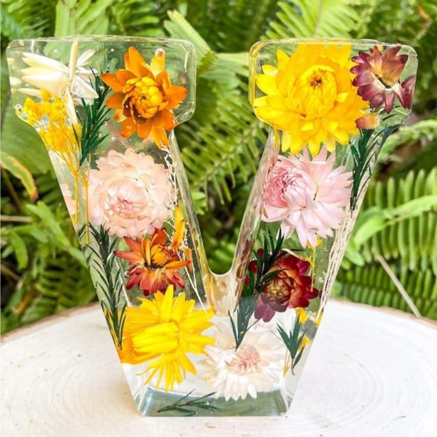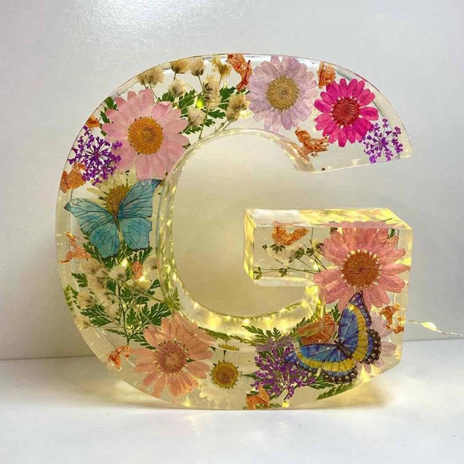 🌸 Handmade Floral Resin Letter LED Night Light ✨ (M)