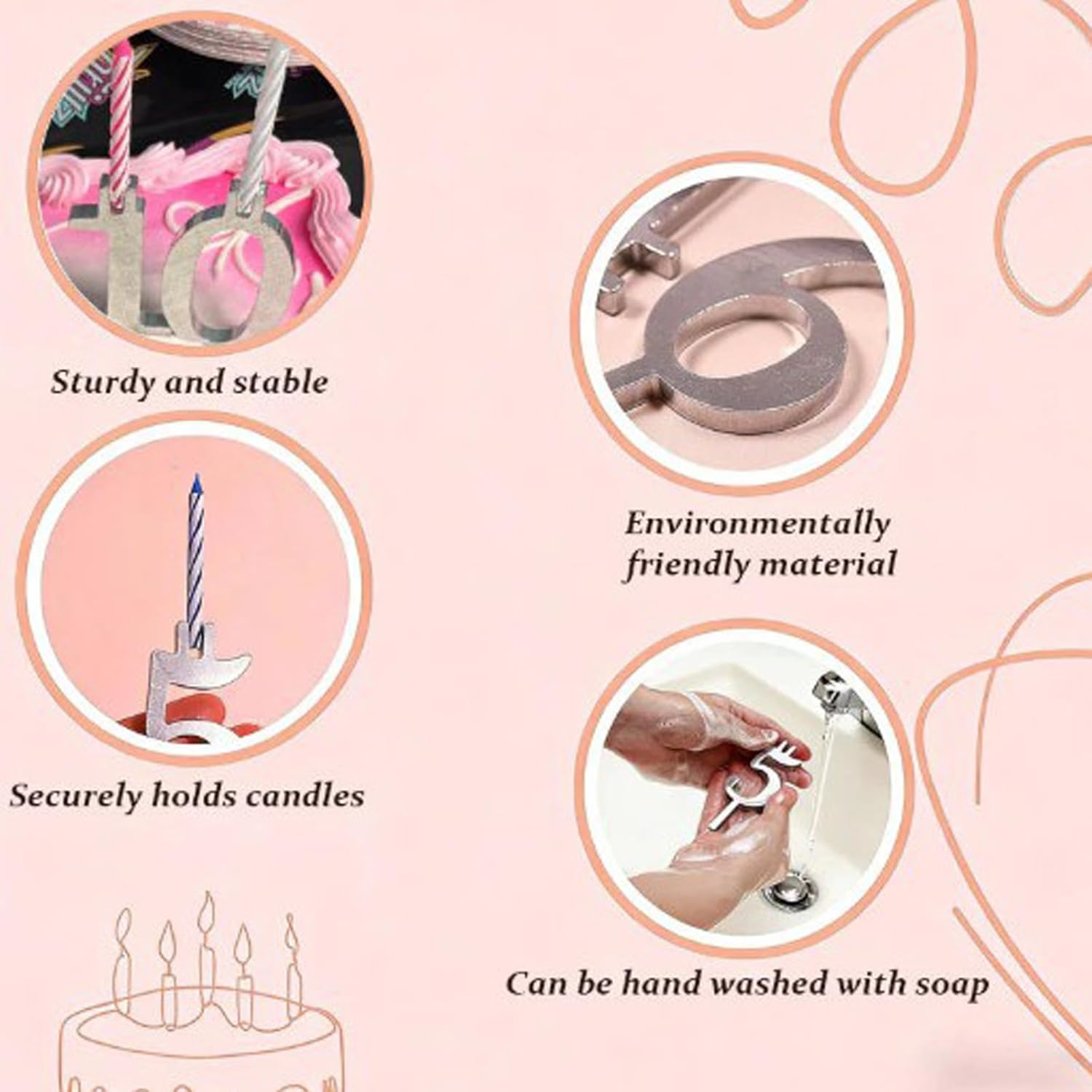 Durable Metal Construction: Crafted from sturdy materials, this metal number candle holder offers long-lasting durability and stability. Unlike disposable options, these number candle holders stand firmly on cakes without bending or warping. The reusable construction ensures reliable performance across multiple celebrations, making this number candle holder set a dependable accessory for parties, bakeries, and repeated festive use