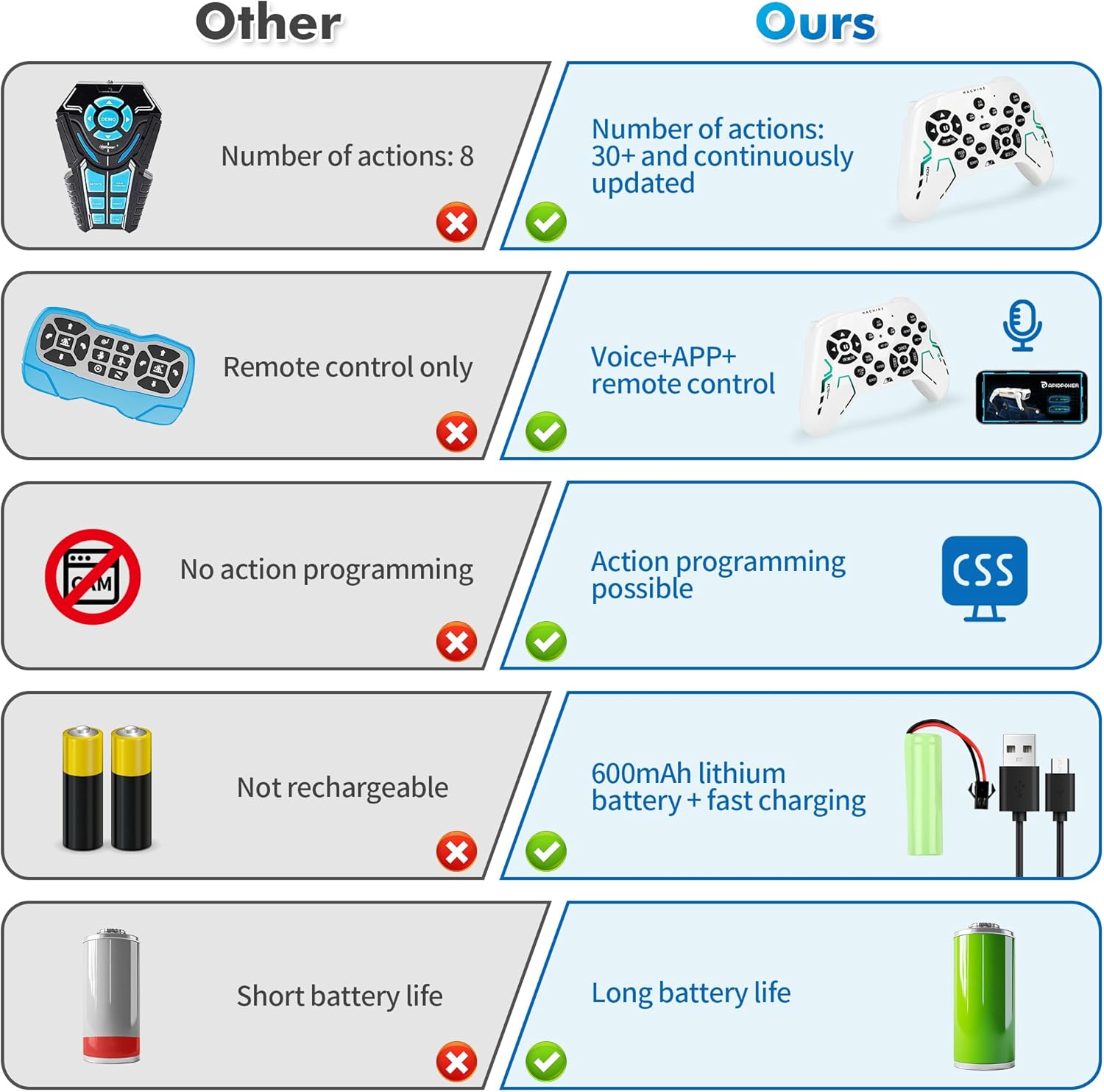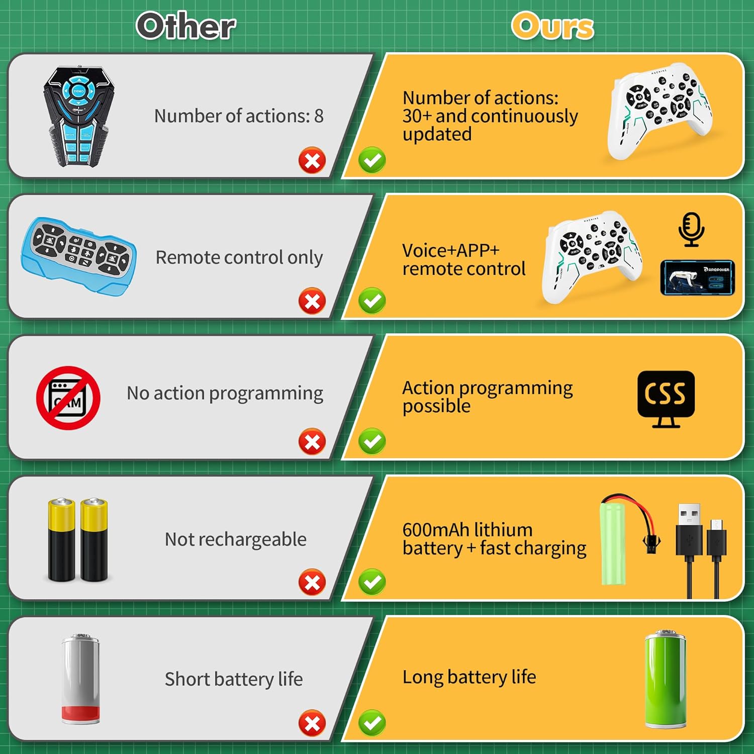 - 💡 STEM Learning & Custom Programming: Spark creativity with coding mode! Kids can design custom action sequences using a simple remote, learning logic and programming basics through play. An engaging introduction to robotics for ages 6-12.